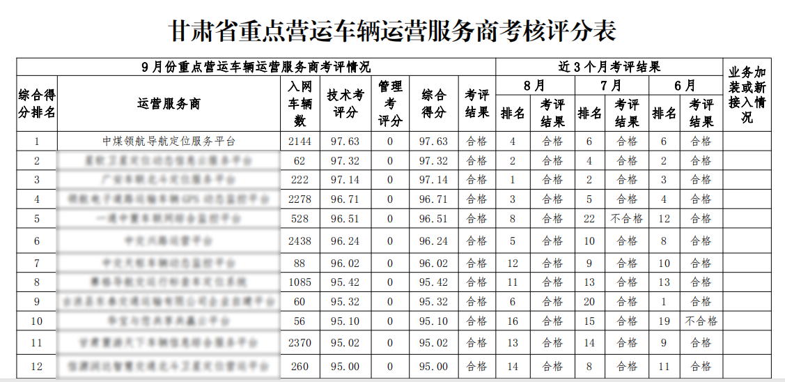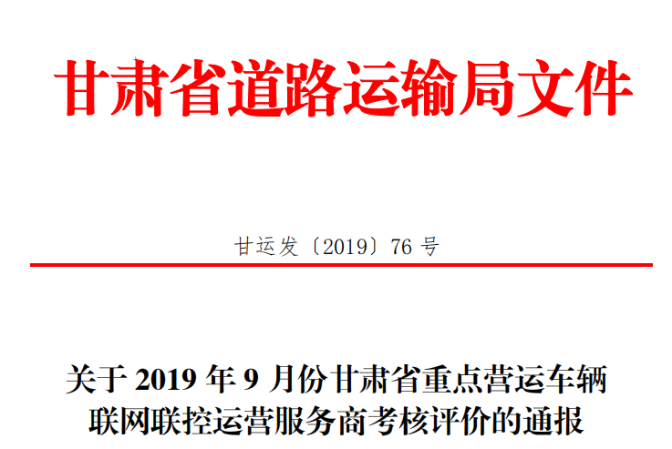 根据10月22日发布的甘肃省道路运输管理局文件【2019】76号,中煤领航导航定位服务平台以总分第一的成绩在全部21家两客一危运营商中取得第一名的好成绩。